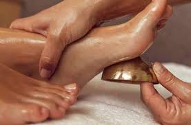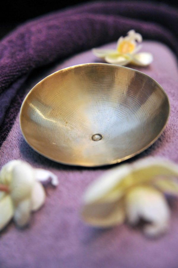 Il s’agit d’une technique de massage traditionnelle indienne qui consiste à masser les pieds avec du beurre clarifié à l’aide d’un petit bol doré, le « bol Kansu ».